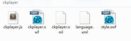 下载地址:http://www.ckplayer.com/down/ 解压后复制到网站根目录即可,地址\ckplayer下,有下面几个文件即可,甚至ckplayer.js都可以清除,配置与精简可以看官网教程。
